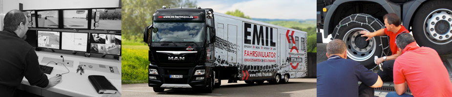 Alternativ kann dieser Lehrgang auch auf EMIL, unserem mobilen Fahrsimulator, durchgeführt werden. Am Arbeitsplatz eines originalen MAN lassen sich verschiedenste Fahrzeugkombinationen auf einem abwechslungsreichen Streckennetz von über 300 km Länge bewegen. Ihr Vorteil: Es fallen dabei keinerlei Fahrzeugkosten an.
